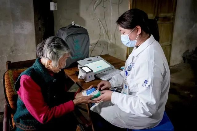 在富阳区千家村的村民家中,项鸯医生熟练地打开“移动服务包”,一一取出血压仪、血糖仪等移动检测设备,为邵老伯与他的老伴俞阿婆进行身体检查。“我老头子腿脚不方便,以前都要麻烦家庭医生先上门来看,我再去门诊配药,现在他们背着个‘包’啊就上门来了,里面各种药、仪器都有……我们方便多了!”对于这种新型的医疗服务,俞阿婆不停地点赞。